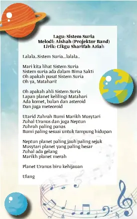Pressreader Berita Harian 2017 07 10 Lagu Sistem Suria Melodi Aishah Projektor Band Lirik Cikgu Sharifah Aziah
