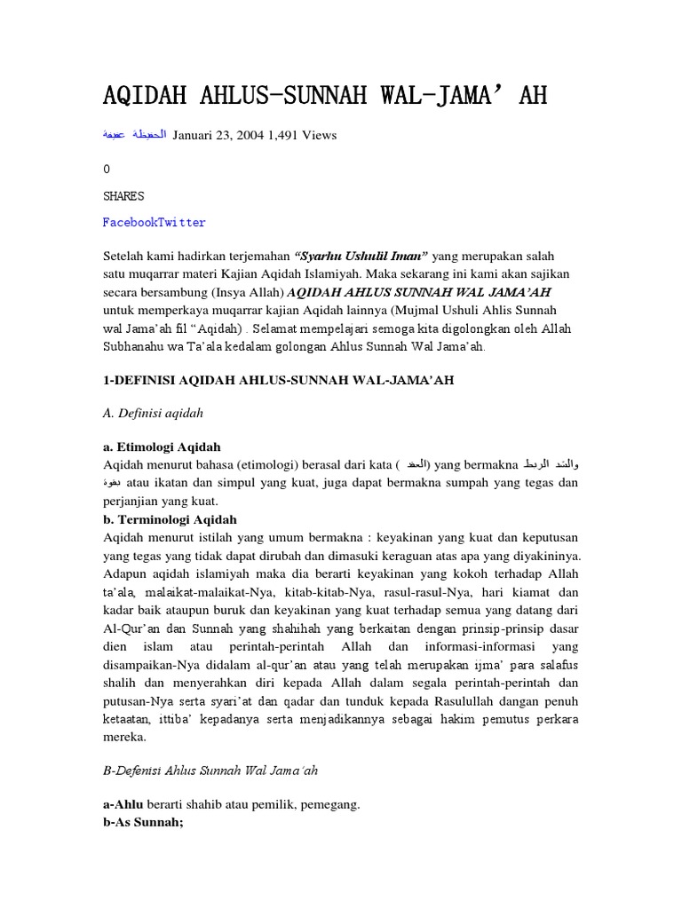 1 Definisi Aqidah Ahlus Sunnah Wal Jama Ah