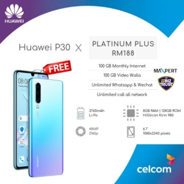 Huawei P30 8gb 128gb Original Bundled With Celcom Platinum Plus Shopee Malaysia