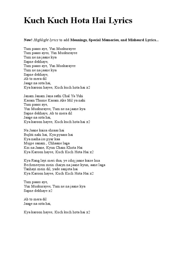 Kuch Kuch Hota Hai Lyrics Full Version Indoindians Com