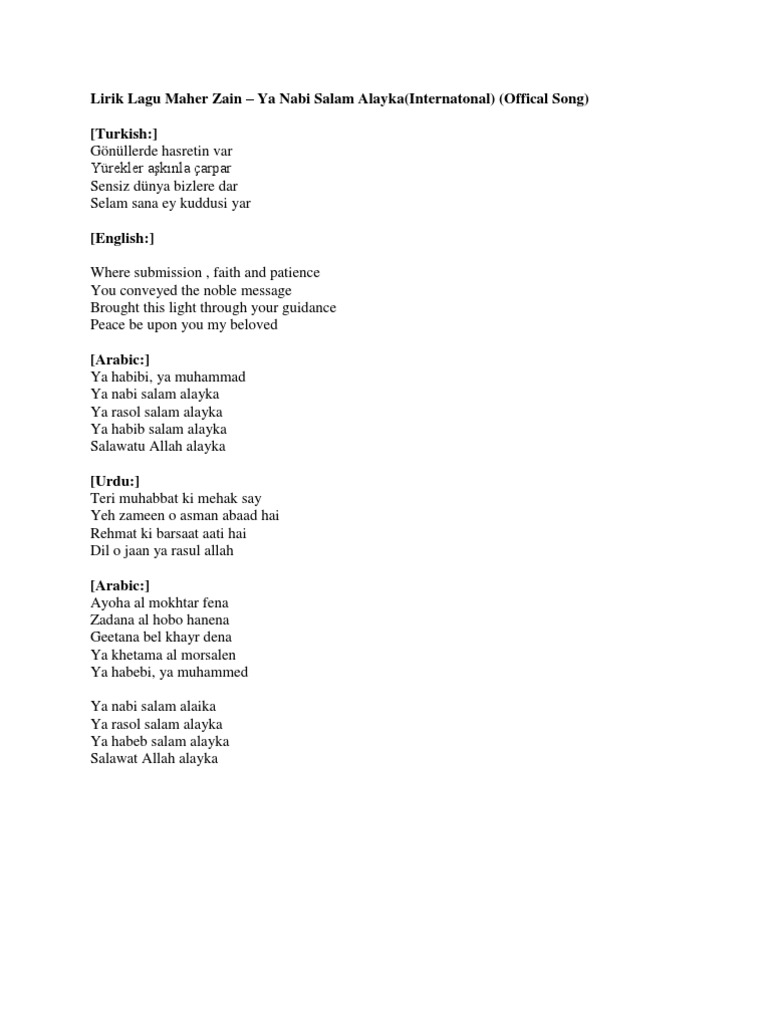 Teks Lirik Sholawat Ya Rasulullah Salamun Alaik Kutipan Agama Lirik Kekuatan Doa