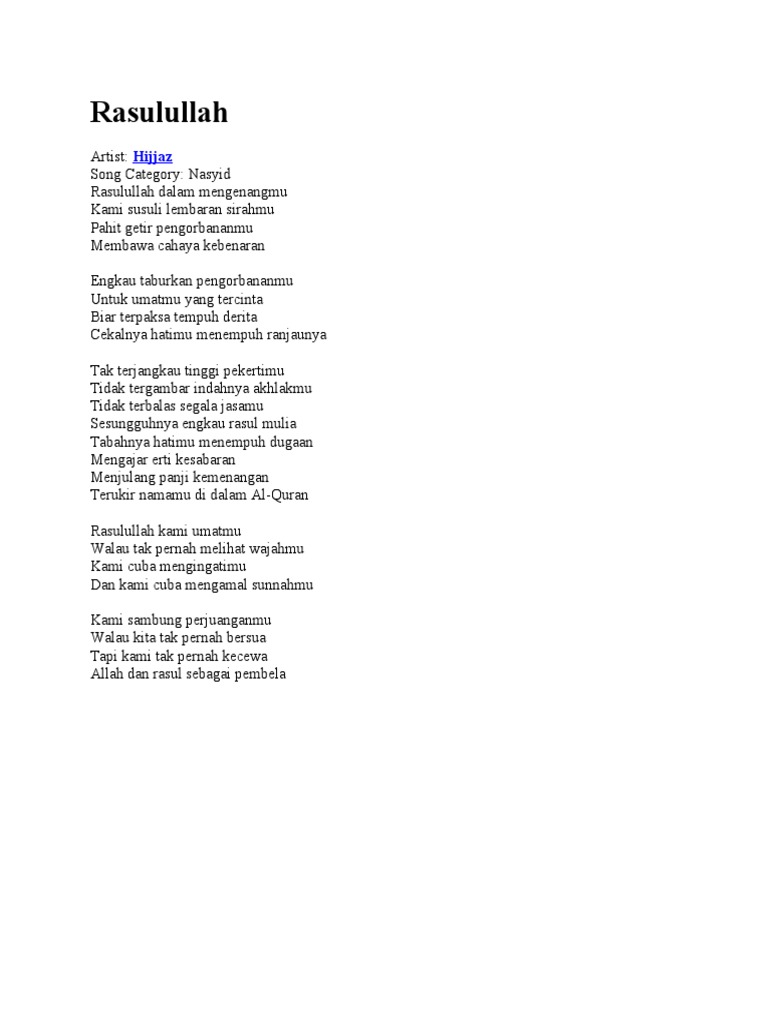 Lirik Lagu Ya Nabi Docx Pnxk7kqkj14v