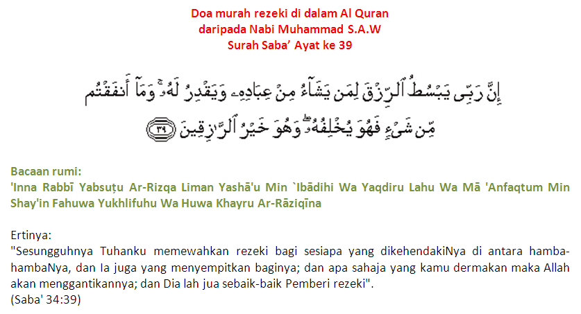 Doa Melancarkan Rezeki Dalam Al Qur An Al Quran Transliterasi Rumi Murah Facebook